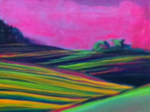 "Golf Course with Pink Sky" By Ellen Rohlfing