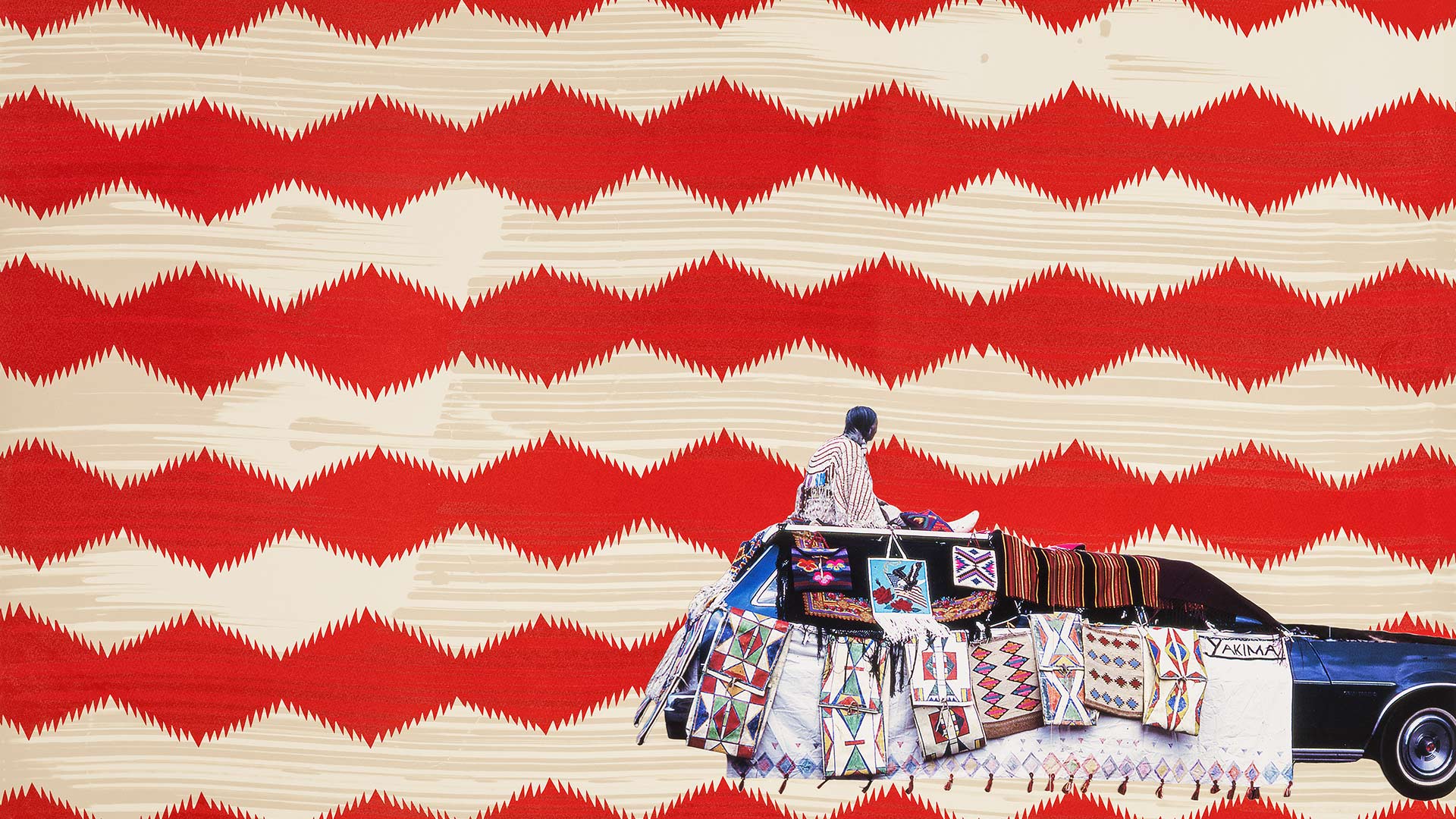 Wendy Red Star, Yakima or Yakama—Not For Me To Say, published by Crow’s Shadow Institute of the Arts, 2015–16. Three-color lithograph with archival pigment print chine collé. Museum purchase with funds donated by James N. Krebs and the James N. Krebs Purchase Fund for 21st Century Paintings. © Wendy Red Star.