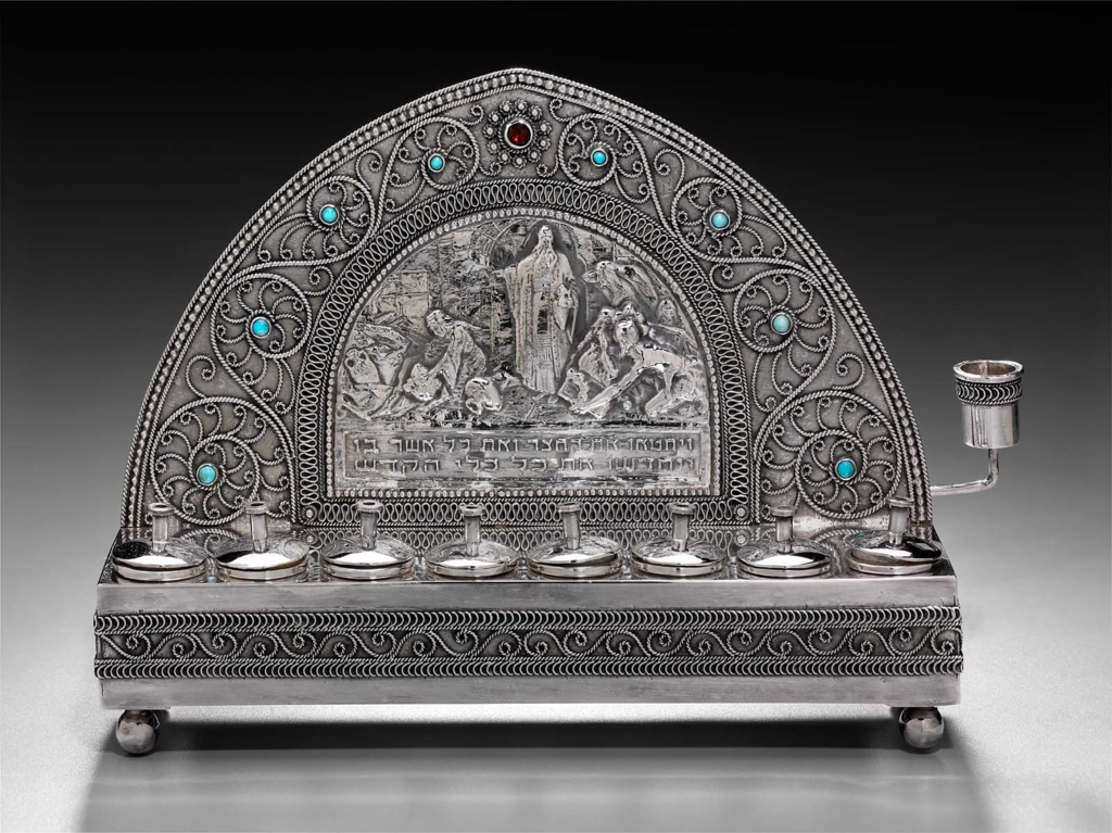 The gift was made by Lynn Schusterman, who, with her late husband, Charles, established The Charles and Lynn Schusterman Family Foundation. “This foundational gift establishes the MFA as one of a very few encyclopedic art museums in America working to build a collection of Judaica,” said Malcolm Rogers, Ann and Graham Gund Director. “The varied and engaging works will enliven our galleries and engage our audience.” The works in the Schusterman Collection represent pieces that were meant to be used in the home—rather than in a synagogue or temple setting—where the celebration of Jewish holidays and rituals has long been enriched by precious decorative domestic objects. The collection includes 71 pieces of silver and metalwork, five works on paper, seven textiles, three paintings, three sculptures, and numerous examples of ceramics and earthenware. Among the diverse objects are 31 Hanukkah lamps in a variety of materials, 22 spice containers, six silver amulet cases, eight pairs of silver Sabbath candlesticks, and a brass standing Sabbath candelabrum.
