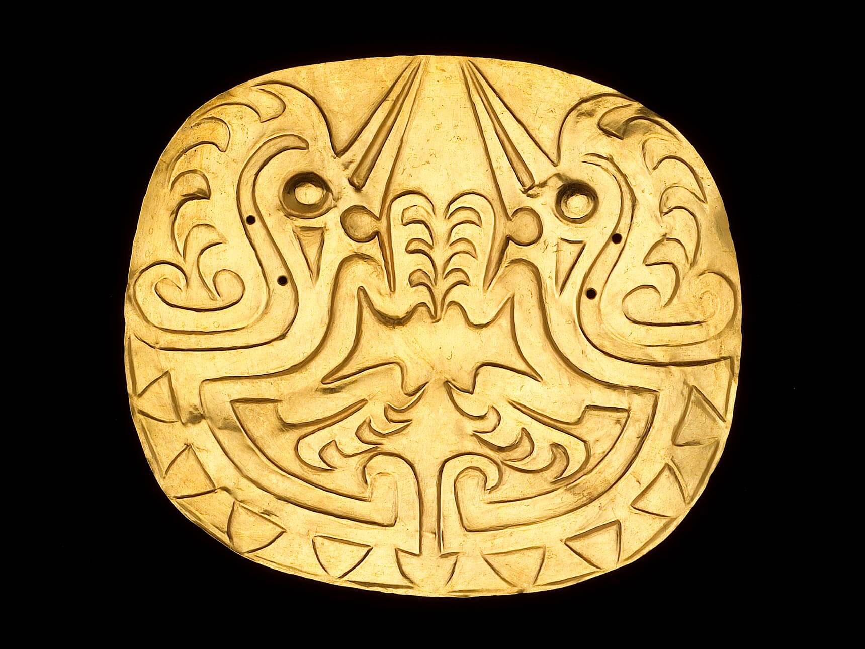 Many Indigenous civilizations in the Americas used a metalworking technique called repoussé or repoussage, in which metal is shaped by hammering or pressing from the back side to create a design that pops out on the front. These civilizations often used repoussé to create beautifully designed pectorals and pendants out of gold. Artists often depicted animals and plants in their surroundings to represent the power of the sun and nature. What design will you make?