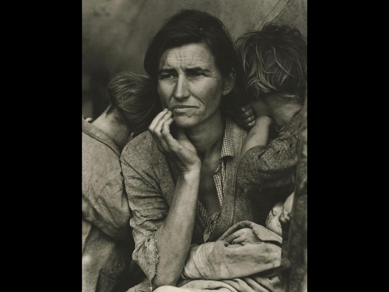 Among the strengths of the Howard Greenberg Collection is its depth of photographs commissioned by the Farm Security Administration (FSA) during the Great Depression. Complementing the modernist images already in the MFA’s collection by Alfred Stieglitz, Edward Weston, Imogen Cunningham and Ansel Adams, iconic photographs such as Dorothea Lange’s Migrant Mother (1936), Arthur Rothstein’s Dust Storm, Cimarron County (1936) and Walker Evans’s Negroes’ Church, South Carolina (1936) provide context into the social upheavals of the era. The collection features socially engaged photography by members of the Photo League—including Sid Grossman, Sol Libsohn and Jerome Liebling—who documented life in New York City. Their work captures scenes of everyday life beginning during the New Deal and extending into Postwar America—urban stories told from multiple perspectives through an important group of humanist photographs.