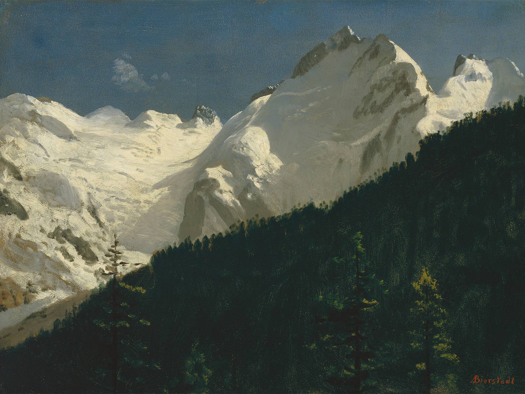 Growing up, I was lucky enough to hike all over the country with family and friends, and to absorb their enthusiasm for the outdoors. I cherished every trip, from strolling through the woods to navigating a geyser field—but I was always most thrilled by the mountains. So I was elated to attend a university in Cambridge, just a few hours from New Hampshire’s magnificent White Mountains. As a leader in the Harvard Outing Club, I’ve visited these mountains many times with fellow leaders, friends, and members of the Harvard community. Every time we drive to a trailhead, shrouded by peaks on either side, I feel giddy. Albert Bierstadt’s Piz Bernina, Switzerland (about 1880–90) perfectly captures this scene that incites my giddiness, the awe I feel when admiring such towering landforms. When I look at this painting, I can feel the sun on my back as I gaze at Piz Bernina from afar. I can smell the dense forest of evergreens that dominate the foreground. I imagine the euphoria of hiking through the Alps with wonderful company, joyous as we connect with the natural world and marvel at its beauty.
