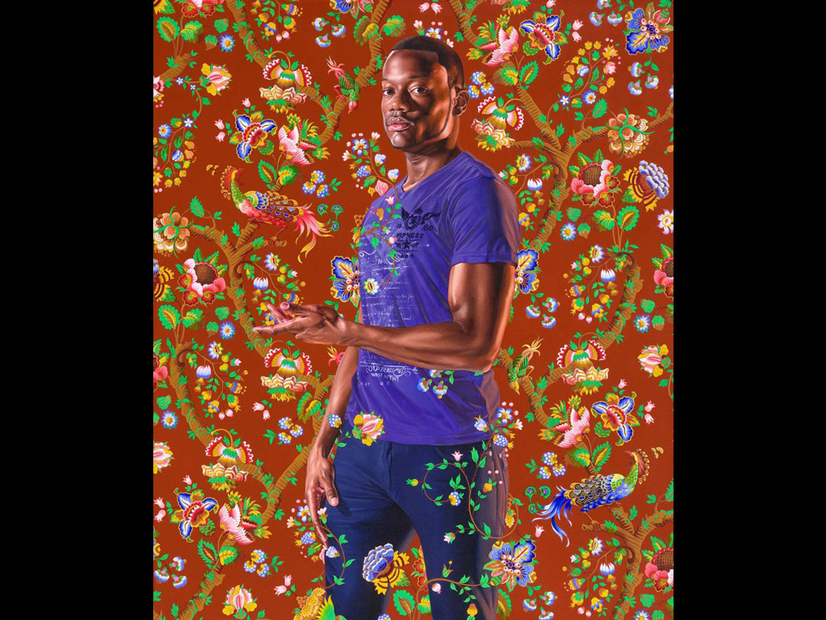 Take a closer look at the portrait above of John, 1st Baron Byron created by artist Kehinde Wiley. What do you think the artist wants you, the viewer, to know about the person in the painting based on the clothes they are wearing, the way they are standing, and the flowers in the background and foreground?