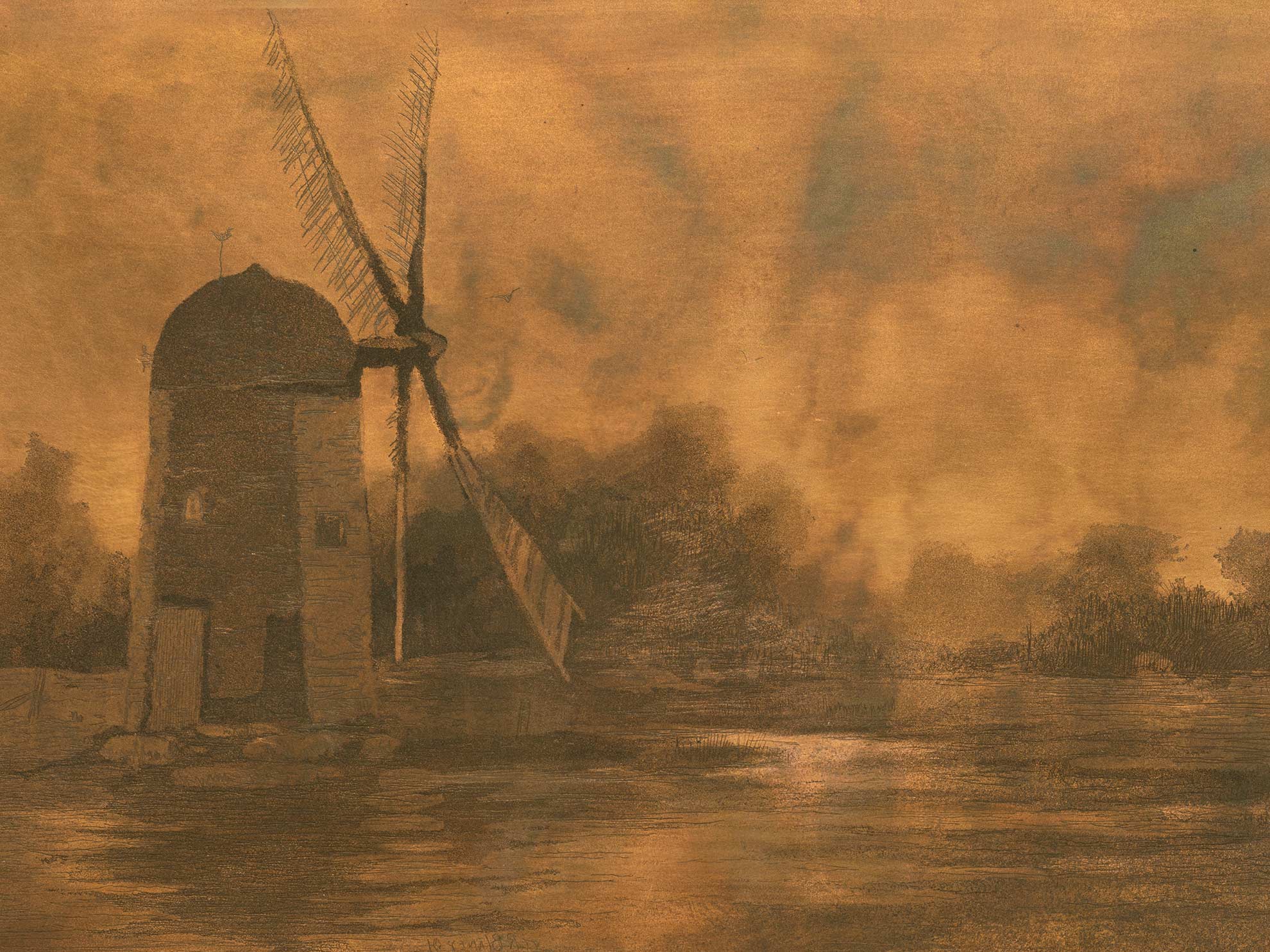- 732. Ideal Landscape, after M. G. Wheelock. Drawn by Edmund H. Garrett, with wax crayon, on grained paper. Scraping in the clouds.