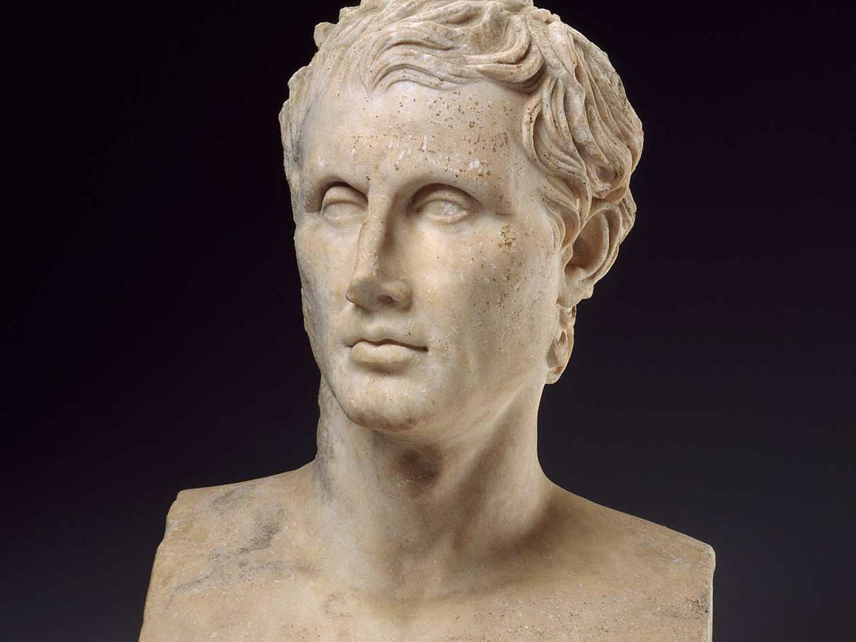 Tragedy and comedy as we know these theatrical forms today were developed by the Greeks as early as the 6th century BCE. This gallery features rare objects depicting scenes and actors from plays, many of which are now lost to us. Ephemeral performances of dancers, musicians, singers, and actors live on here. In ancient Greece, plays began as a way to honor Dionysos—the Greeks wrote and performed for the festivals held in his honor. The gallery features vases painted with scenes from the tragedies of Aeschylus, Sophocles, and Euripides as well as the comic playwright, Menander, whose marble portrait (late 1st century BCE or early 1st century CE), one of the finest in the world, anchors the gallery. Many of the plays gained a wider audience when the Greek settlers of Southern Italy and Sicily embraced this art form, building stone theaters to feature the spectacles, and local painters in the region captured scenes on vases.